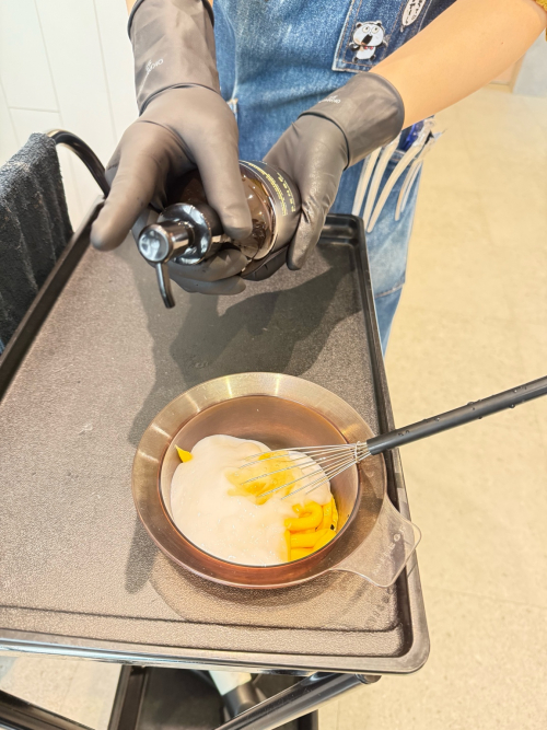 カラー剤を作る際に「ボンドトリートメント」を混ぜ合わせます。